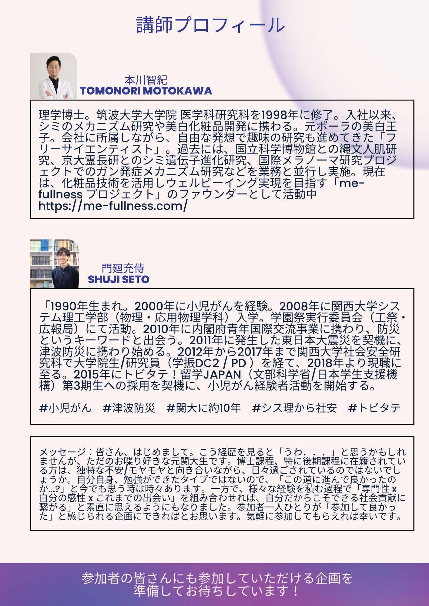 2022/11/18 【参加者募集】#20代の私へ:大学院生時代の自分に伝えるとしたら(海外研究活動に関する講演会)