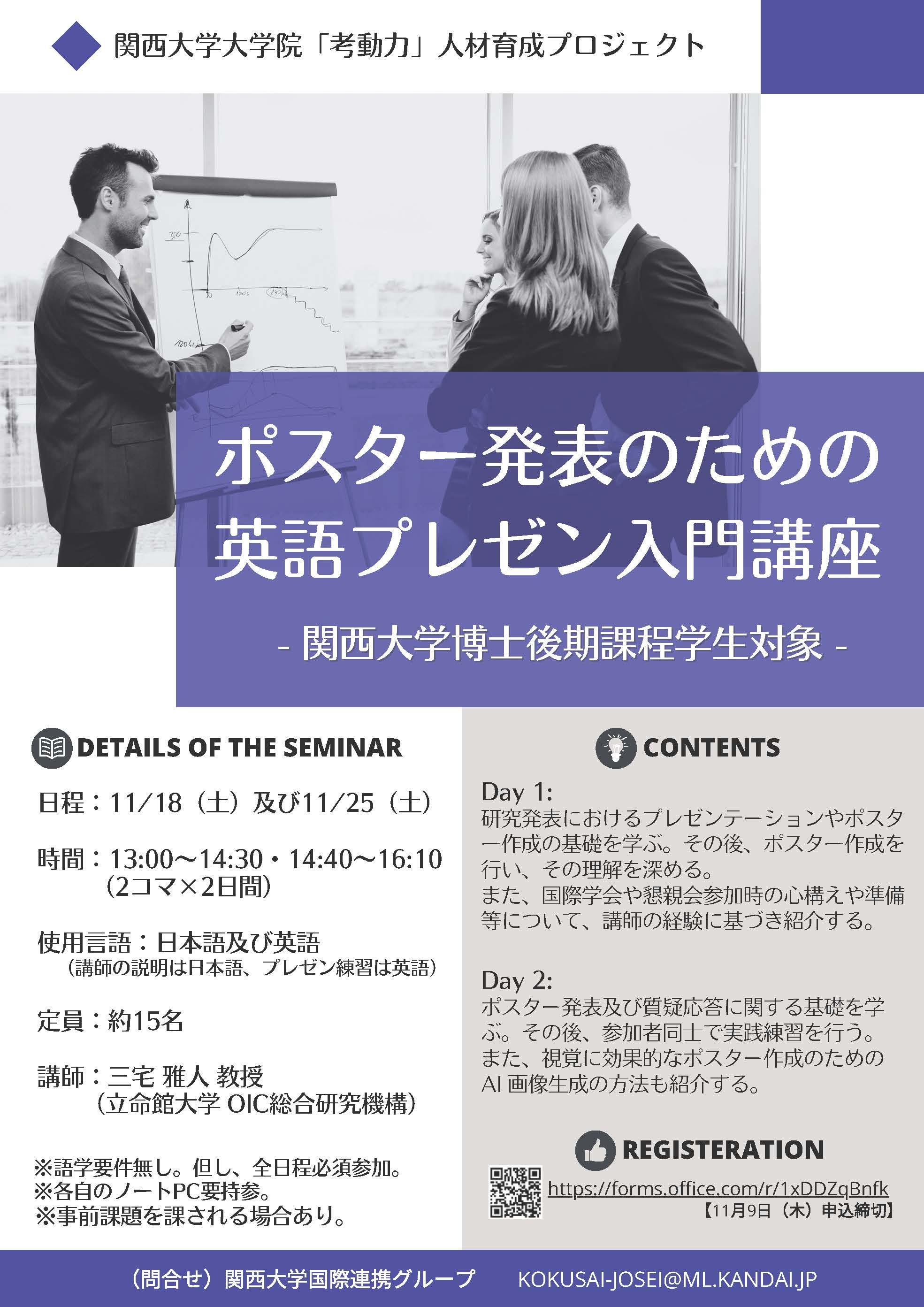 2023/10/13 【博士後期課程対象】「ポスター発表のための英語プレゼン入門講座」の開催について