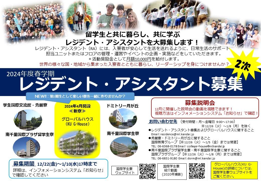 2023/12/22 ◆国際学生寮で国際交流しませんか?◆2024年度春学期 レジデント・アシスタント(RA)追加大募集!