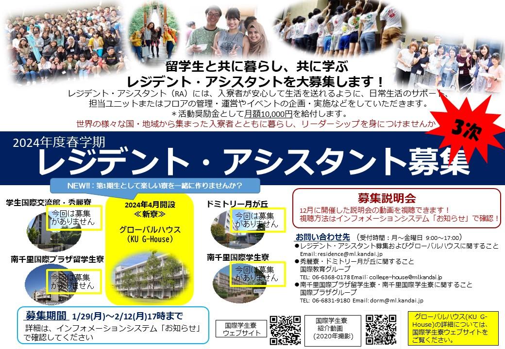 2024/02/02 ◆第1期生として、楽しい寮を一緒に作りませんか?◆2024年度春学期 レジデント・アシスタント(RA)さらに追加大募集!