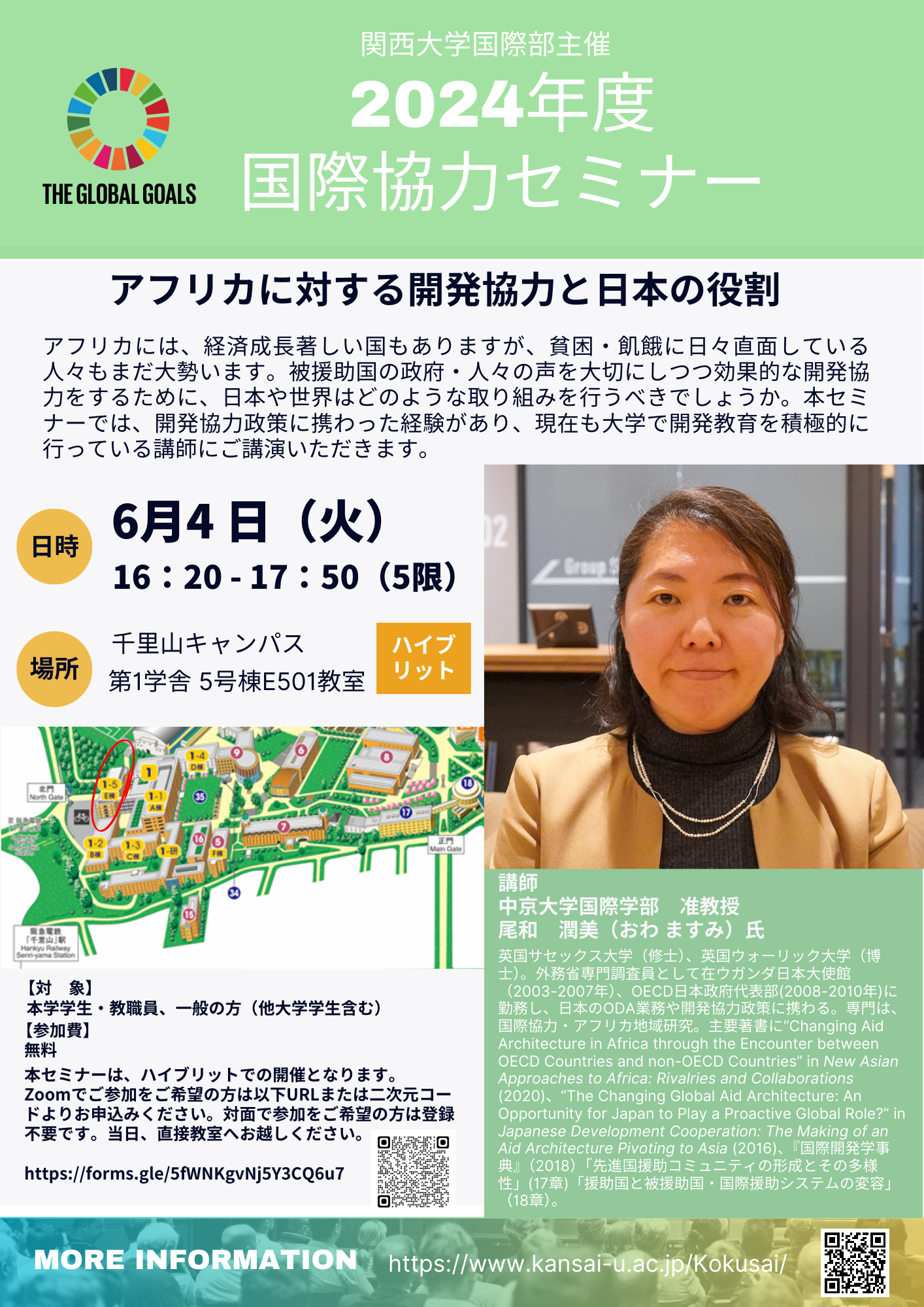今回は、中京大学 国際学部 准教授 尾和 潤美(おわ ますみ) 氏をお迎えし、「アフリカに対する開発協⼒と⽇本の役割」をテーマとしたセミナーを企画しました。