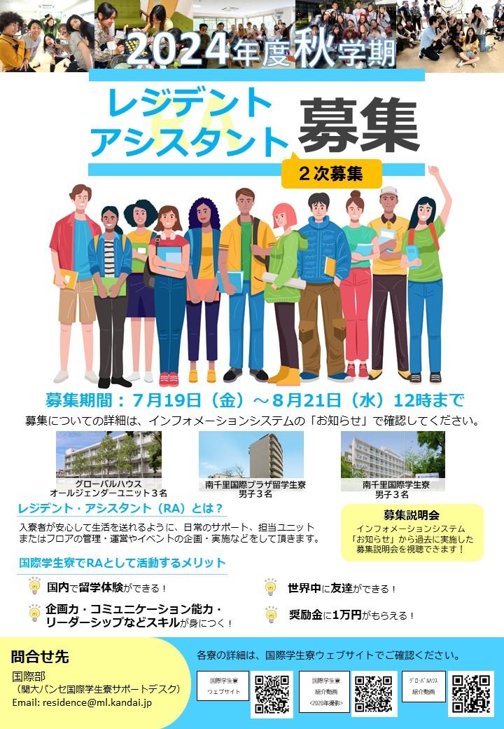 2024/07/19 ◆2次募集◆2024年度秋学期 レジデント・アシスタント(RA)募集!