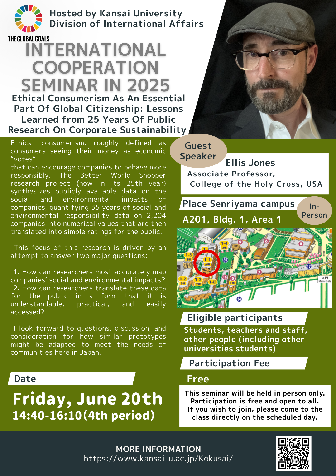 2025/06/02 2025年度 春学期国際協力セミナー「Ethical Consumerism As An Essential Part Of Global Citizenship」を開催します!