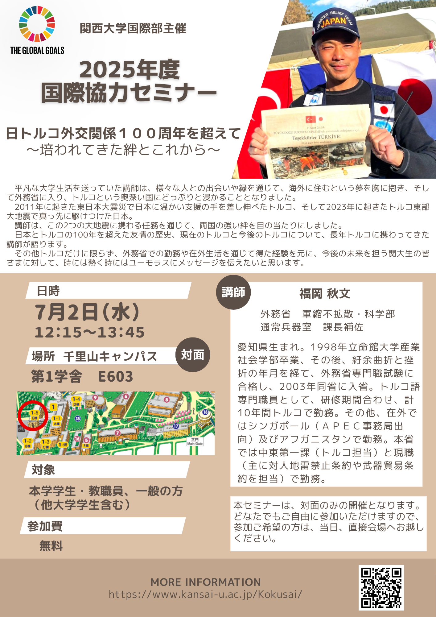 2025/06/11 2025年度 春学期国際協力セミナー「日トルコ外交関係100周年を超えて~培われてきた絆とこれから~」を開催します!