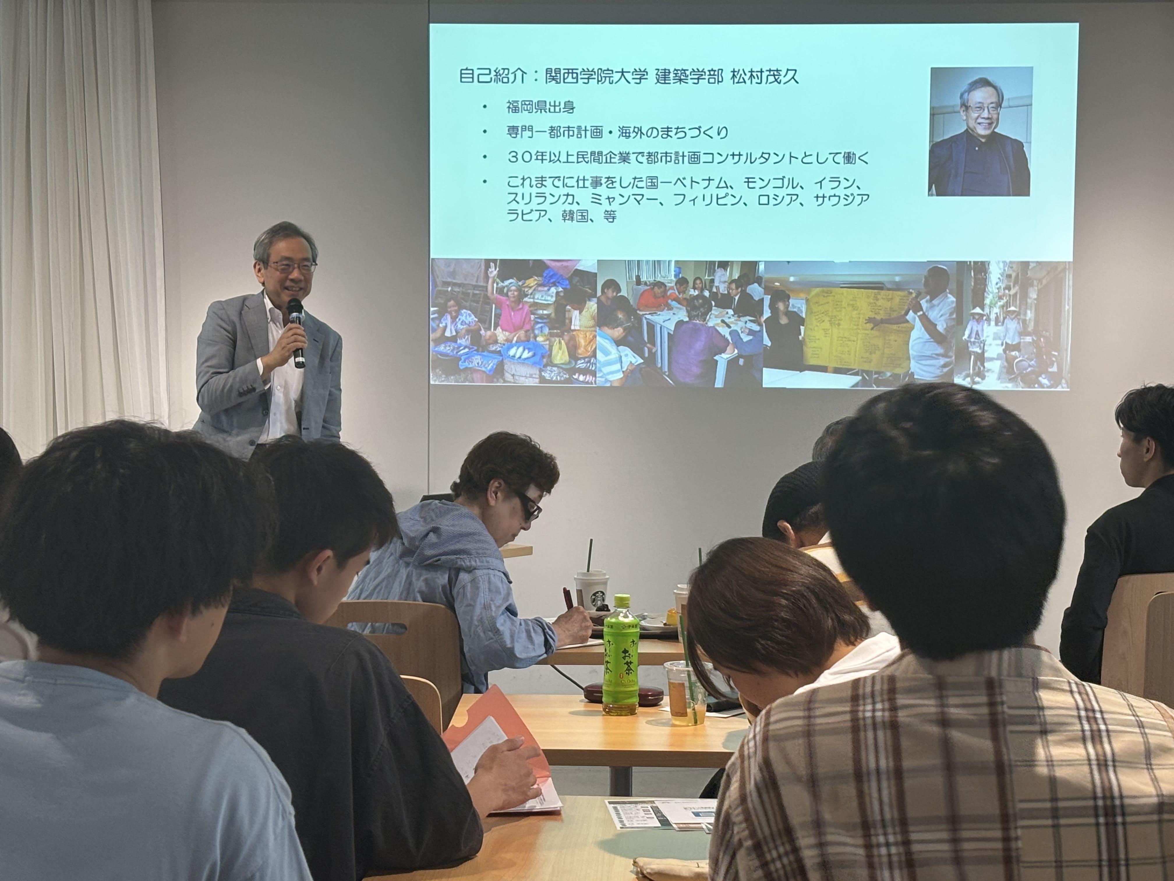 今回の講師は、関西学院大学建築学部教授の松村茂久(まつむら・しげひさ)氏。30年以上にわたり都市計画のコンサルタントとして活躍され、