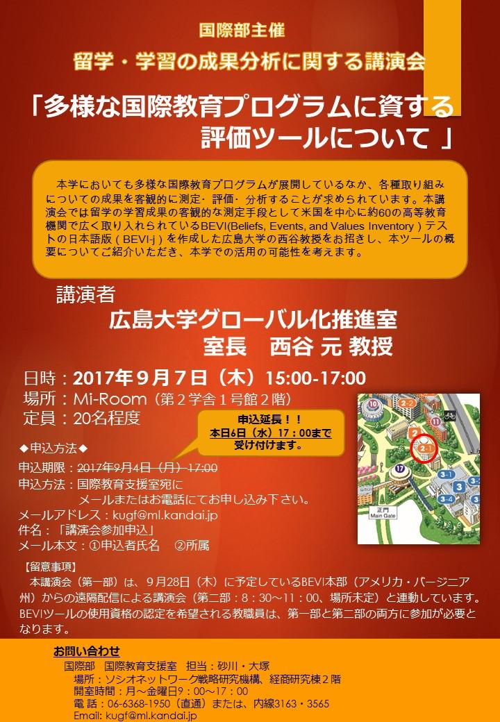 2017/09/06 【教職員向け】留学・学習の成果分析に関する講演会開催について