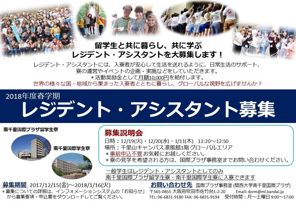 2017/12/18 【2018年度春学期 レジデント・アシスタント大募集!】