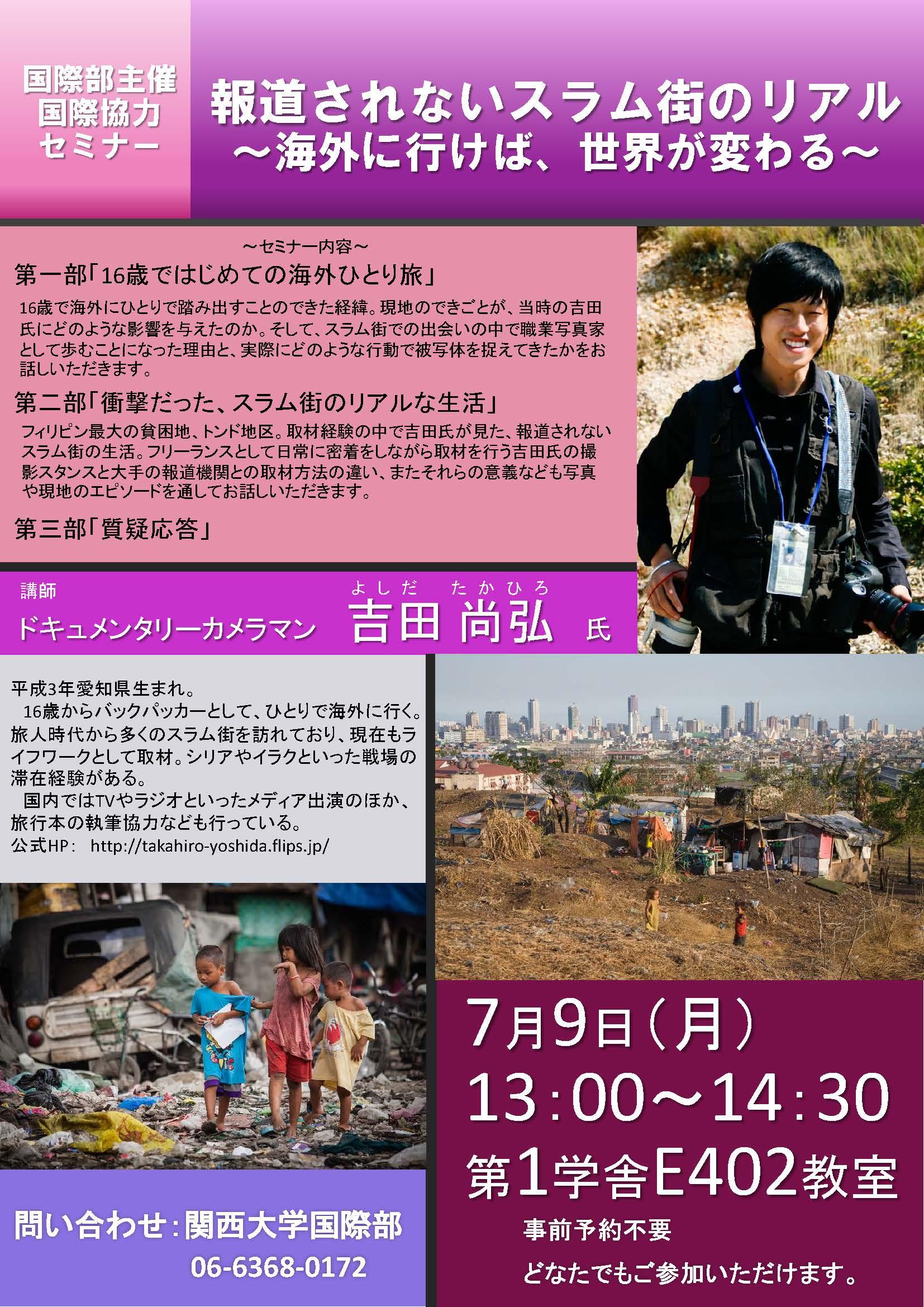 2018/06/28 【国際協力セミナー】7/9「報道されないスラム街のリアル~海外に行けば、世界が変わる~」を開催♪