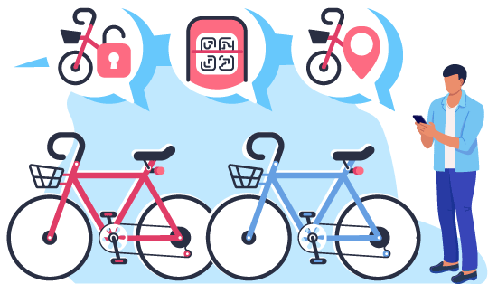 吹田みらいキャンパスには、全国7,000ヵ所以上でシェアサイクルを利用できる大手サービス「HELLO CYCLING」の駐車ステーションを導入しています。最寄駅のJR岸辺駅や阪急正雀駅の周辺にも駐車ステーションが複数ヵ所あります。