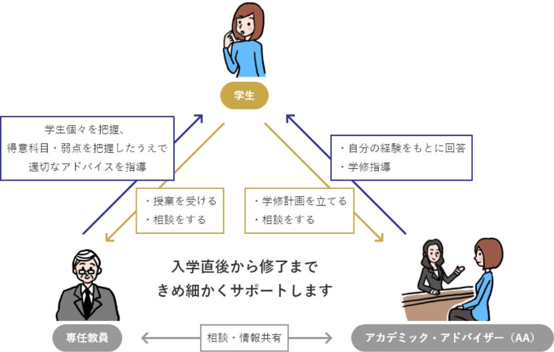 若手弁護士であるアカデミック・アドバイザー(AA)とは、授業外の特別演習を担当している先生です。