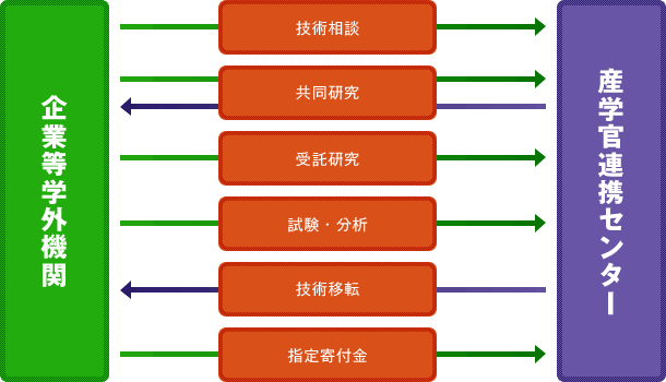 産学官連携活動の一環として、受託研究、共同研究、技術相談、試験・分析等の窓口となっております。