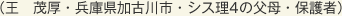 総会での芋縄会長の挨拶の中で“熊本在住の父母の手紙”を聞き、親心におもわず目がしらが熱くなりました。教育後援会総会に出席し感動した一日でした。ありがとうございました。