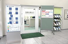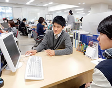 堺キャンパス事務室は、A棟の1階にあり、院生、学部生からの、大学生活に関する問合せや相談に対応しています。千里山キャンパスとは異なり、履修や試験に関することから、奨学金やサークル活動などの課外活動に関することまで、すべてが事務室内で対応可能です。