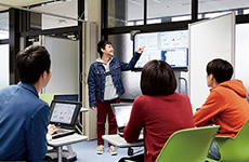 ITセンター(インフォメーションテクノロジーセンター)には、学生が利用できるパソコンや印刷用プリンタが設置されており、インターネットやインフォメーションシステム(モバイル関大)、電子メール(関大Webメール)、レポート、論文作成などに活用されています。また、授業の課題やゼミの発表準備などグループで利用できるスペースもあり、常駐の学生スタッフがパソコンやサービスの利用についてサポートしています。