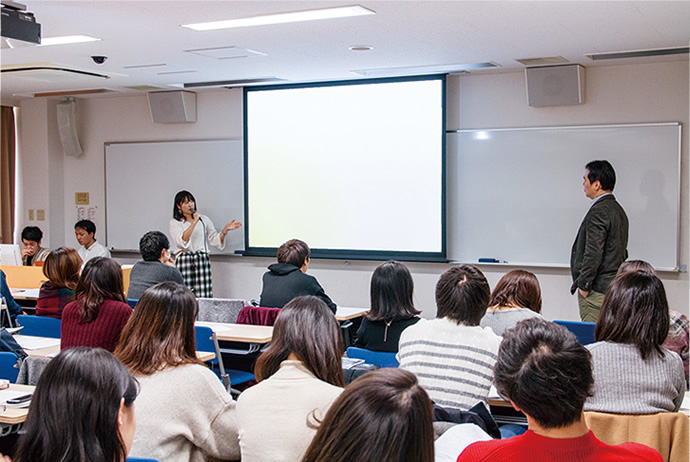 父母・保護者の皆さまが学生の発表をご覧になったら驚かれるかもしれませんが、今の学生はコンピュータやデータを駆使しながら、高いレベルで企画立案やプレゼンテーションをすることができます。それが当たり前の世代のなかで、どんなアドバンテージを持ってビジネスの世界に進出するのかが問われています。私はこの授業を通じて、学生に社会で戦っていける武器を身につけてほしいと考えています。あくまで入門編の授業なので、ここでの学びは経営学やマーケティングの基礎理論に対する理解を深め、企画やプレゼンテーションのフレームワークを体験することが主目的です。それを土台にして、各ゼミなどで個別の研究テーマに取り組みながら、自分のアイデアをマーケティングプランやビジネスモデルに引き上げる能力を磨いてほしいと思います。