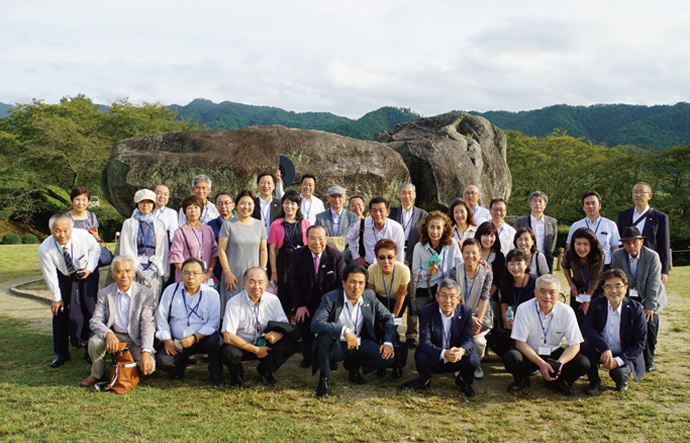関西大学教育後援会は会員数約3万人、全国規模の保護者会です。毎年各地で地方教育懇談会などを開き交流を深めていますが、2018年秋、初めての試みとして、各支部の相談役や名誉支部長と本部役員との交流会を、奈良県明日香村で開きました。約50人が参加し、大学のPRや支部同士の交流会など、様ざまなご意見が飛び出しました。