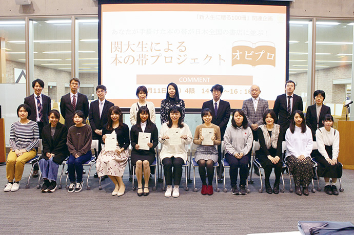 「100冊」企画による関大生の成長と質の高さをうかがわせるのが「本の帯プロジェクト」(オビプロ、協力:紀伊國屋書店、創元社)です。これは、「ワンピースで世界を変える!」の帯文を著者の後輩である関大生が手掛け、最優秀作品は全国の書店に並ぶ書籍の帯を飾るという企画でした。