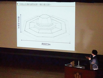 昨年12月13日に開かれた講座では関西大学文学部、西本昌弘教授が「飛鳥京跡苑池を考える」と題して講演しました。苑池は飛鳥宮の庭園跡で、中国などの影響を受け、斉明女帝が宮殿に隣接して建設。西本教授はこうした建造物の歴史的意義について説明しました。