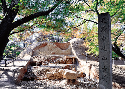 被葬者の権力の大きさがうかがえる。 - ・ 石室は10枚の切り石で精巧に組み合わされ、骨壺が安置されたとみられる90センチメートル四方の内面は見事に磨き上げられたうえ、赤色顔料が全面的に塗られている。
