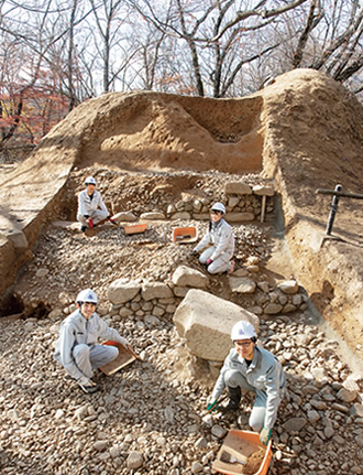 村と関大考古学研究室の共同調査で、その成果は昨年11月末、発表と同時に、各メディアに大々的に取り上げられました。その後開かれた現地説明会には、コロナ禍にもかかわらず全国から3千人近い考古学ファンが詰め掛けたほどです。