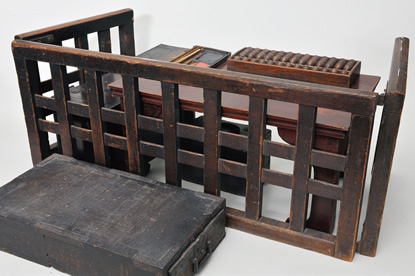 関西大学元理事長の羽間平安氏から寄贈を受けた、江戸時代から明治初期にかけての美術品や歴史資料、民俗文化財などです。なかでも、江戸時代元禄期の広島藩三原城主であった浅野忠義公が元服の時に着用した具足や、江戸時代に大坂の商家で使用された帳場道具、舟箪笥や金銀出入帳、京都で舞踊に使われた打掛などが目立ちます。