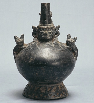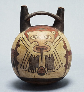 関西大学の教育と研究に理解を示した篤志家から寄託いただいた、古代アンデスの美術工芸品29点です。神面文壺や黒色神像壺、ジャガー顔面鎧形土器など、インカ帝国以前のペルー各地の地域文化がうかがえます。
