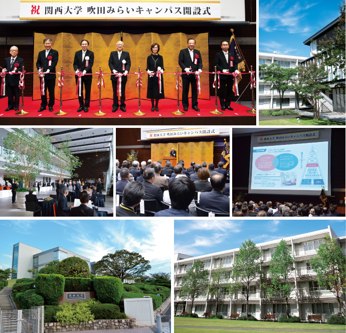 関西大学では、10月11日(水)、新キャンパス開設式典が挙行された。当日は約200人の関係者が列席され、式典ではテープカットに続き、芝井敬司理事長による挨拶、前田裕学長による新学部紹介「関西大学 吹田みらいキャンパスにおける新たな展開」が行われた。