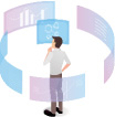 蓄積されたデータを読み解いて人の行動や社会の現象の背景をとらえ、新しい知見を導き出す力とともに、それらをビジネスの諸問題に役立てる力を身につけます。プログラミングや情報セキュリティ、深層学習、データベースなどの技術を学びつつ、それらをビジネスに実装できるスキルを養います。