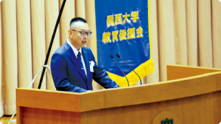 午前中、中央体育館にて実施した「教育後援会総会」は、関西大学グリークラブによる学歌斉唱から厳かにスタート。各種事業や決算の報告、会長・監事の選出、そして来賓の方々によるご挨拶があり、最後には箏曲家の西陽子元客員教授と上田流尺八奏者の谷保範氏による演奏が披露され、華やかな雰囲気のなかで総会を締めくくりました。