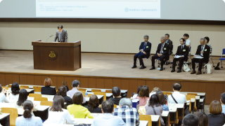 5月18日(日)、千里山キャンパスにて「父母の一日大学」を開催しました。数日前までは雨の予報が出ていましたが、当日は時折雲の合間から強い日差しが差し込み、初夏を思わせるような好天に恵まれました。全国各地から5,000人を超えるご父母にご来場いただき、新緑がまぶしいキャンパスは熱気に包まれました。
