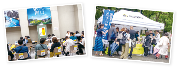 また、新関西大学会館北棟には「留学」「奨学金」「国民年金」に関する相談コーナーも設置され、多くの方が足を運ばれました。ご家庭の状況に応じた具体的なアドバイスが受けられるとあって、順番を待つ列もできるほどの盛況ぶりでした。