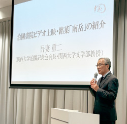 ついでビデオ「大阪ナンバーワンの学問所 泊園書院」を上映、百二十余年にわたる同書院の歩みをたどりました。本学出身の噺家、林家染太師匠のユーモアあふれる語り、株式会社・読売連合広告社の撮影による22分間の映像は、「想像していたよりずっと良かった!」と大好評を頂戴した次第です。