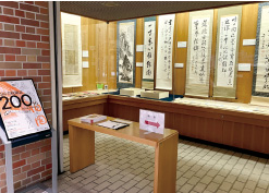 千里山キャンパス総合図書館一階の展示室で泊園書院に関する貴重書や書画、印章(篆刻)を展示しました。関連写真・パネルのほか、泊園書院の大阪における祖である菅甘谷の書、東畡・南岳・黄鵠の書軸や巻物、南岳らの著作、近年の関連出版物を展示しました。