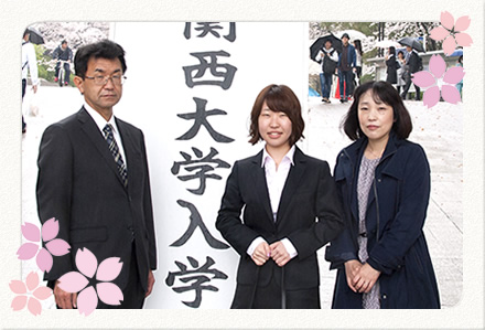 - 「受験勉強では心配をかけましたが、両親の応援のおかげで憧れの関大生になりました。」