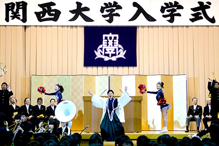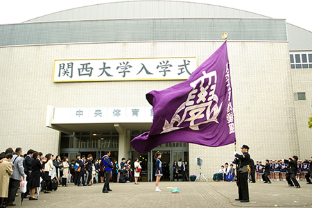 去る4月1日(金)、平成28年度関西大学入学式が挙行され、新入生約6,880名が大学生活の第一歩を踏み出しました。入学式では楠見晴重学長の式辞に続いて入学生総代が宣誓を行いました。また、閉式後には応援団による恒例の新入生歓迎セレモニーも実施され、新入生の新たな門出を祝いました。ここでは当日の様子をご紹介します。