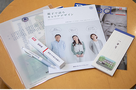 受付ではキャリアデザインに関するパンフレットや関西大学のニューズレター、記念品などをお配りしました。