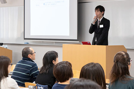 理工系学部では、大学院生による就職活動体験報告を実施。学部卒と大学院卒の就活に関するプロセスの違いなどについて語りました。