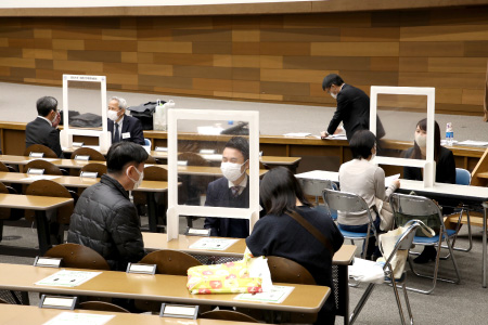 理工系学部の会場では、キャリアセンター主事による就職に関する総合説明、理工学研究科長による大学院進学に関する説明、理工学研究科の大学院生による就職活動体験報告が実施されました。