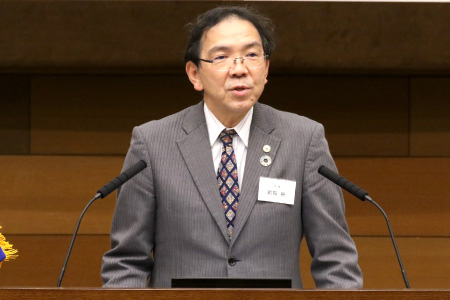キャリアプランニングセミナーの開催に先立ち、関西大学前田裕学長から、父母の皆さまにごあいさつを申し上げました。