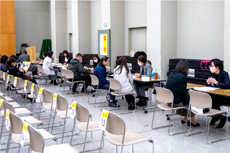 学部別の各会場で「就職に関する個人面談」を希望者対象に開催したほか、別会場では、留学や奨学金、国民年金の学生納付特例制度などについての個別相談も実施しました。