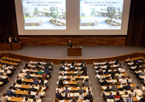 12月1日(日)、快晴の千里山キャンパスで「2年次生父母対象 キャリアプランニングセミナー」が開催されました。学部別に3つのホール・教室にわかれ、キャリアセンターのスタッフによる就職状況の報告や、内定を得た先輩たちによる就職活動体験報告、学外講師による講演会、個人面談などが実施されました。理系学部では大学院進学に関する総合説明も行われ、ほかにも留学や奨学金をテーマにした個別相談が併せて開催されました。例年通り、多くのご父母が参加され、進路に関するさまざまな話に熱心に耳を傾けていらっしゃいました。当日の様子を写真中心にレポートいたします。