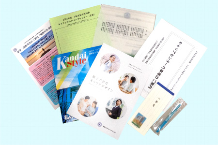 各会場で参加者の皆さまに「親子で語るキャリアデザイン」など関西大学の就職支援に関する資料と記念品をお渡ししました。また、個別面談を希望する方の受付も行いました。