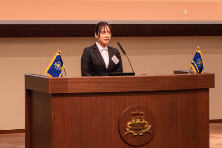 就職内定を得た学生たちが、就職活動での経験を報告しました。どのようなスケジュールで就活を進めたのか、失敗談や、うれしかったご父母のサポートについて語りました。