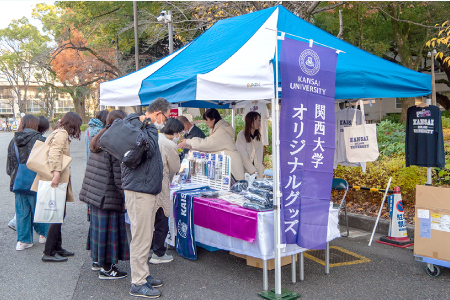 正門付近には特設の関西大学グッズ販売ブースが登場。マグカップやTシャツなど、関西大学ならではの多彩なアイテムが並び、多くのご父母が手に取られていました。
