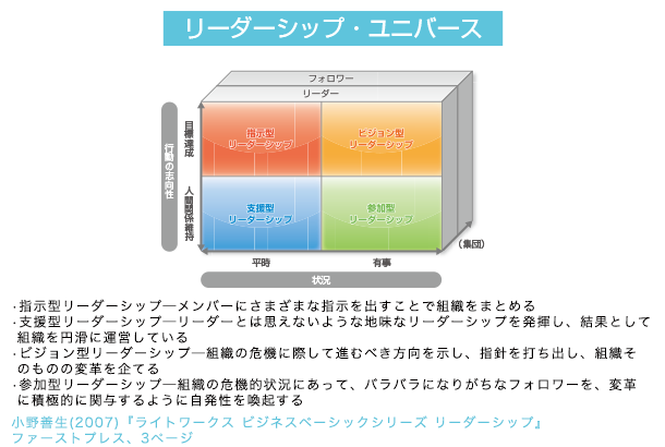 経済が成長過程にあった時代、メインのリーダーシップは工場の経営、ブルーカラーをどうモチベートしていくかであり、仕事に関して的確な指示をし、人間扱いしてくれるリーダーが必要とされました。その後、オイルショックなどで世界情勢が不安定になり、80年代にアメリカに現れたのが熱狂的な支持者を従えるカリスマリーダーです。しかし、これは後が続きませんでした。そこで90~2000年代に始まったのが、リーダーシップはリーダーだけの問題ではなく、フォロワーシップがいかに重要であるかという研究です。リーダーの倫理性も問われるなかで、フォロワーの自己概念、フォロワーを積極的にどう意識変化させていくかということが、これからのリーダーの課題であり社会全体の課題でもあります。