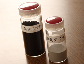 酸化ダイヤモンドは表面を酸素に覆われており、その酸素が規則的に並んでいるという特性があります。酸素の部分にだけ金属微粒子が付いて高分散に保たれるため、高密度のカーボンナノチューブの生成が可能となるのです。また、内部のダイヤモンドはカーボンであるため、生成物に不純物が含まれることなく、仕込みに対して10倍もの量を生成することができます。