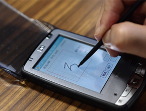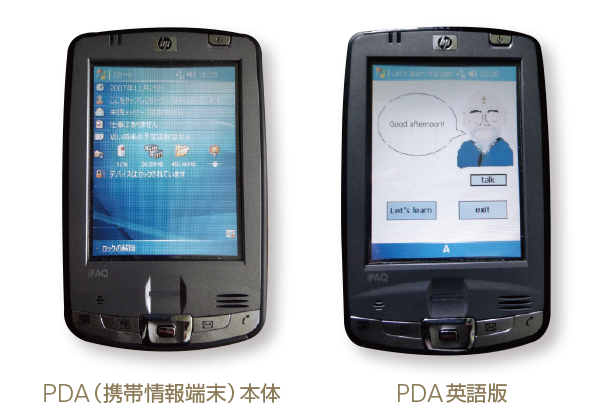 私たちが開発したシステムは、動画再生機能、トレース機能、字形評価機能、アドバイス提示機能を備えたもので、これをタッチパネルのPDA(携帯情報端末)に搭載して、いつでもどこでも手軽に効果的な学習が可能になりました。