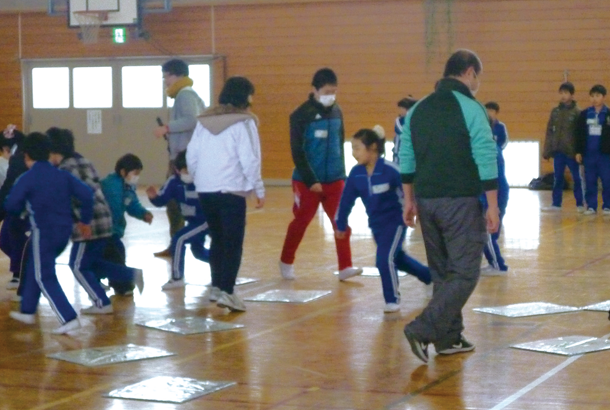 南相馬市では、小学校の体育館で、大きな取り札を使ったカルタ大会を企画して行っています。カルタは池田市の幼稚園児と一緒に作ったもので、読み札の文面が子供たちへの励ましのメッセージになっています。これを学生が読み上げると、子供たちが取り札に向かって走り出します。カルタ大会は、運動場が思うように使えない子供たちに体育館の中で元気に走り回ってもらおうという企画でもありました。これらの活動を通じて見聞きしたことは本学の市民講座などで報告しています。