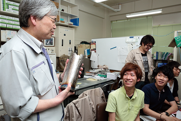 先生はチタン合金の話をしているときは、本当に楽しそうですね。