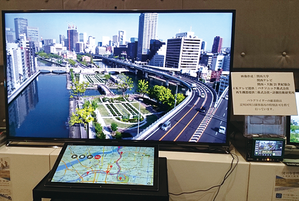 今年2月に関西大学社会的信頼システム創生センターと関西テレビが共同で、同社の扇町スクエアで開催した「淀川今昔明日ものがたり」で公開しました。これが好評で、5月には、グランフロント大阪のナレッジキャピタルThe Lab.で「淀川今昔明日ものがたりⅡ」が開催されることになり、4Kカメラを使用してモーターパラグライダーで空撮した淀川沿岸の映像コンテンツを新たに加えて展示しました。この2つのイベントでは、巨大なモニタに映し出された絵巻物の超高精細画像を使って、美術史がご専門の中谷伸生文学部教授、社会学がご専門の与謝野有紀社会学部教授による解説も行われました。他には、関西大学博物館での展示、オープンキャンパス、CGの国際会議SIGGRAPH 2014でも披露しています。